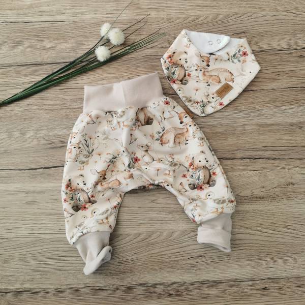 Komplet vsebuje hlačke ter nepremočljivi slinček. Hlačke so dolgo nosljive in zelo udobne.