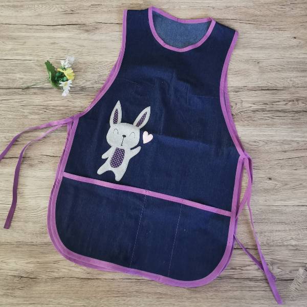 Iščete popoln predpasnik za vzgojiteljice, ki je hkrati praktičen in prikupen? Naš unikaten predpasnik iz jeansa je zasnovan posebej za delo v vrtcu ali varstvu. S svojo simpatično aplikacijo (npr. zajček s srčkom), barvno obrobo po izbiri in kakovostnim materialom je popolna kombinacija udobja, uporabnosti in stila.