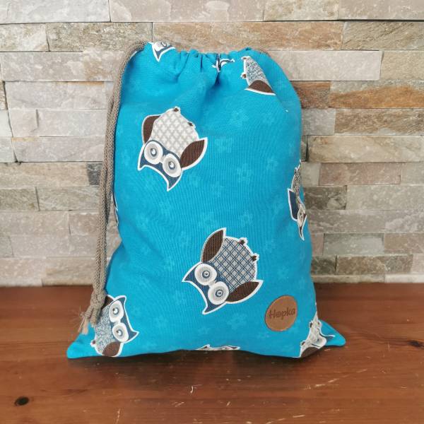 Platnena vrečka za copate ali perilo – Sovice na modri
