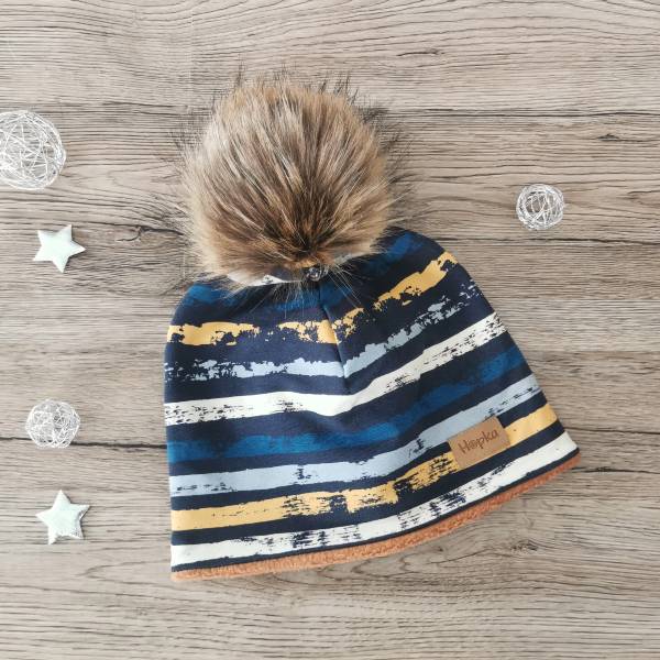 Zimska kapa s cofom/brez cofa ali šal – Akvarel črte Earth, bombažna flis podloga